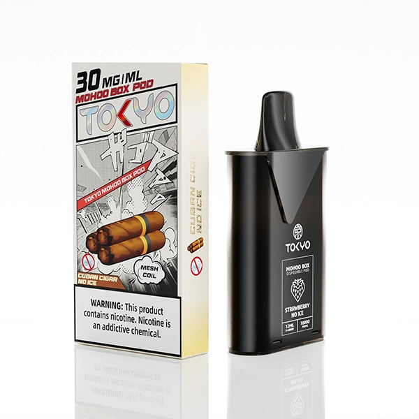 東京魔盒電子菸煙彈採用植物甘油與丙二醇基底,搭配高純度尼古丁鹽,容量12mL、尼古丁強度30mg/mL(3%),搭載1.0Ω鋼網棉霧化芯,設計為一次性pod,約10,000口,吸引力持久。